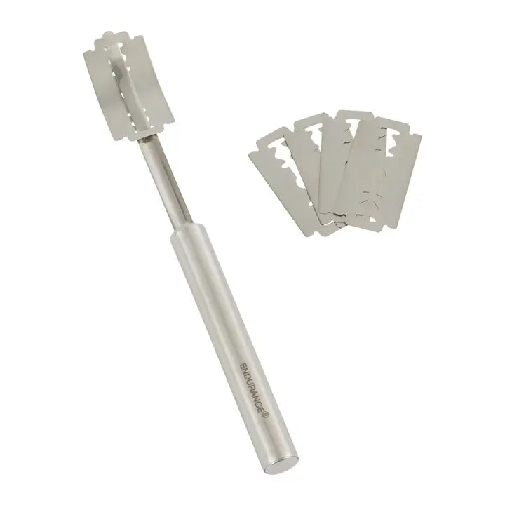 Razor sharp blade for scoring bread dough * Includes 4 replacement blades * Included leather blade cover for safe storage * Stainless steel handle * Hand wash carefully