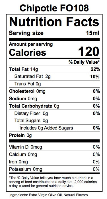 Natural chipotle pepper oil extracts are added to an extra virgin olive oil to create a deep, rich and smoke-dried chipotle flavor explosion that is highlighted with a hint of smoked hickory. This well balanced infused oil is a customer favorite and perfect for grilled or smoked chicken and meat. Southwestern cuisine fans will be inspired by this authentic chipotle flavor and aroma. A 5 out of 10 on the heat index.