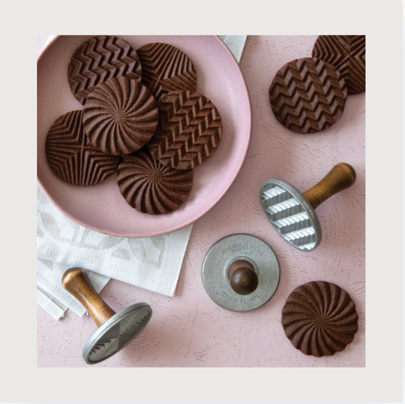 These heavy cast keepsake stamps will amaze and delight. Simply press the pattern into balled cookie dough to make these masterpieces.